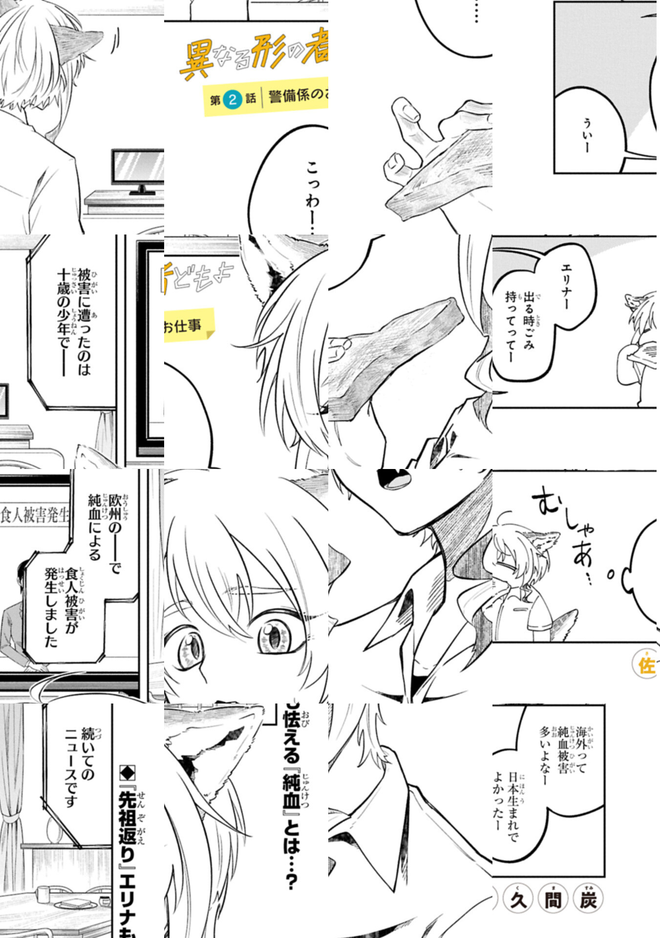 人外を祖先に持ち、その特徴が発現した人間『先祖返り』──。狼木エリナは、大楠異専に通う、人狼の先祖返り。人間離れした力を持つ生徒たちのトラブルを淡々と対処する『普通の人間』用務員・田中を慕っており…。恋愛・友情・バトル!?ありの共生物語!!