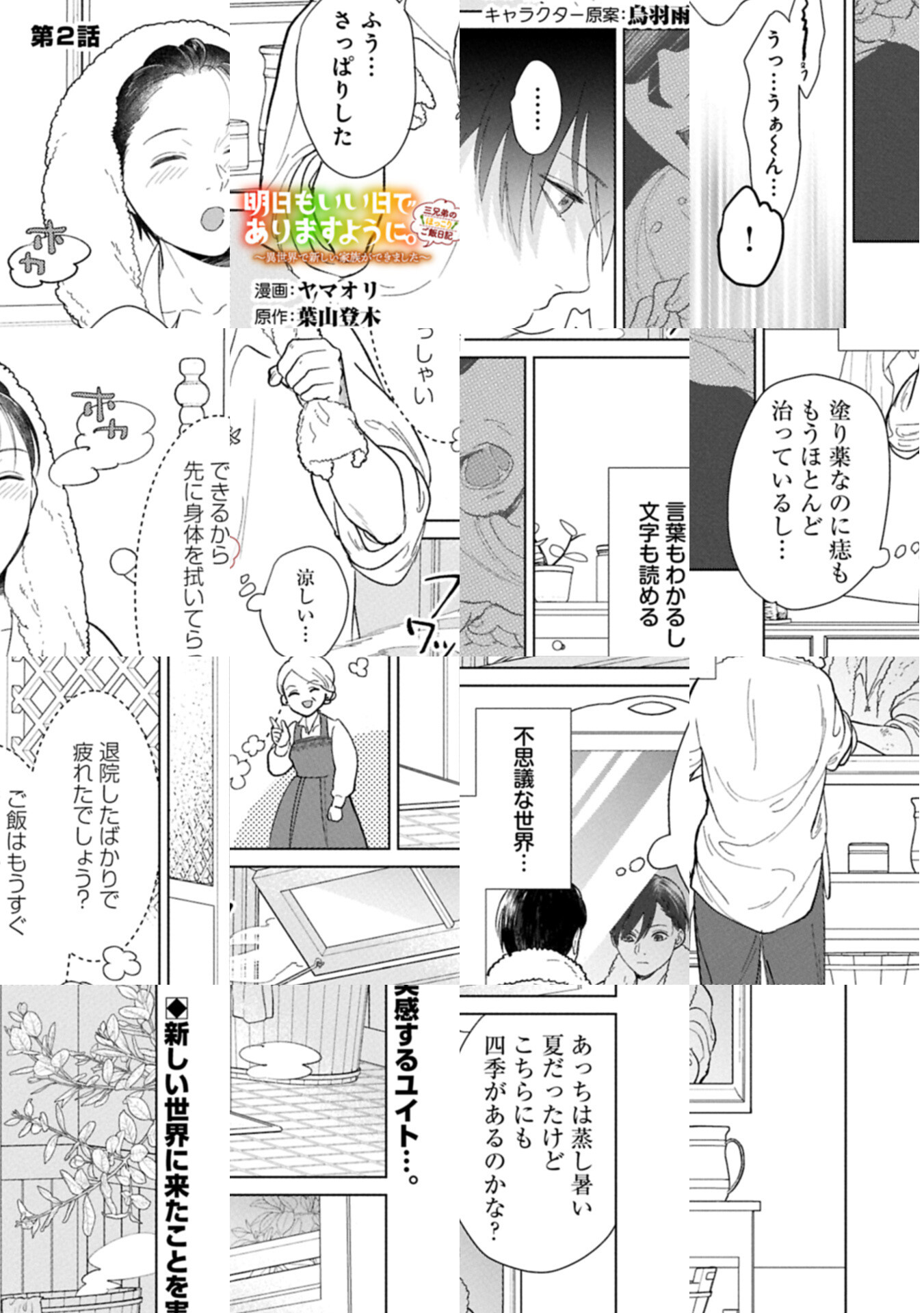 三兄弟のユイト、ハルト、ユウマは母親を交通事故で亡くし、離れて暮らしていた父親に引き取られ、理不尽な暴力に耐える日々を送っていた。ろくな食事も与えられず、頼れる身寄りもないと絶望しかけたその時――土砂崩れに巻き込まれ、三人そろって異世界に転生。偶然通りかかった冒険者・トーマスは道端で倒れていた三人を保護、妻で食事処 "オリーブの樹"を営むオリビアとともに“新しい家族”として三人を迎え入れるのだった…。 愛され三兄弟が紡ぐ、あったか異世界スローライフ、はじまります!