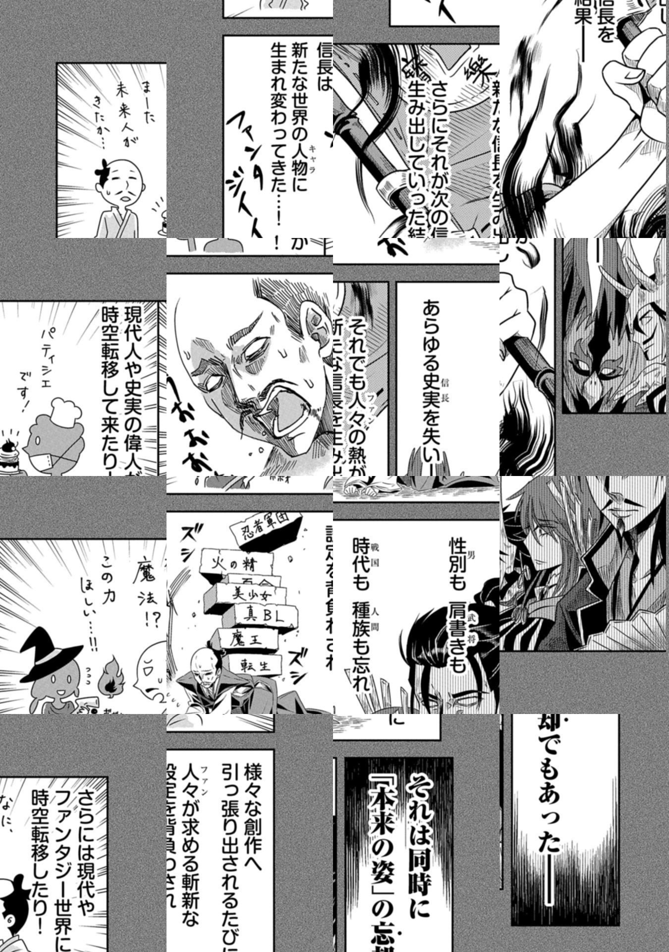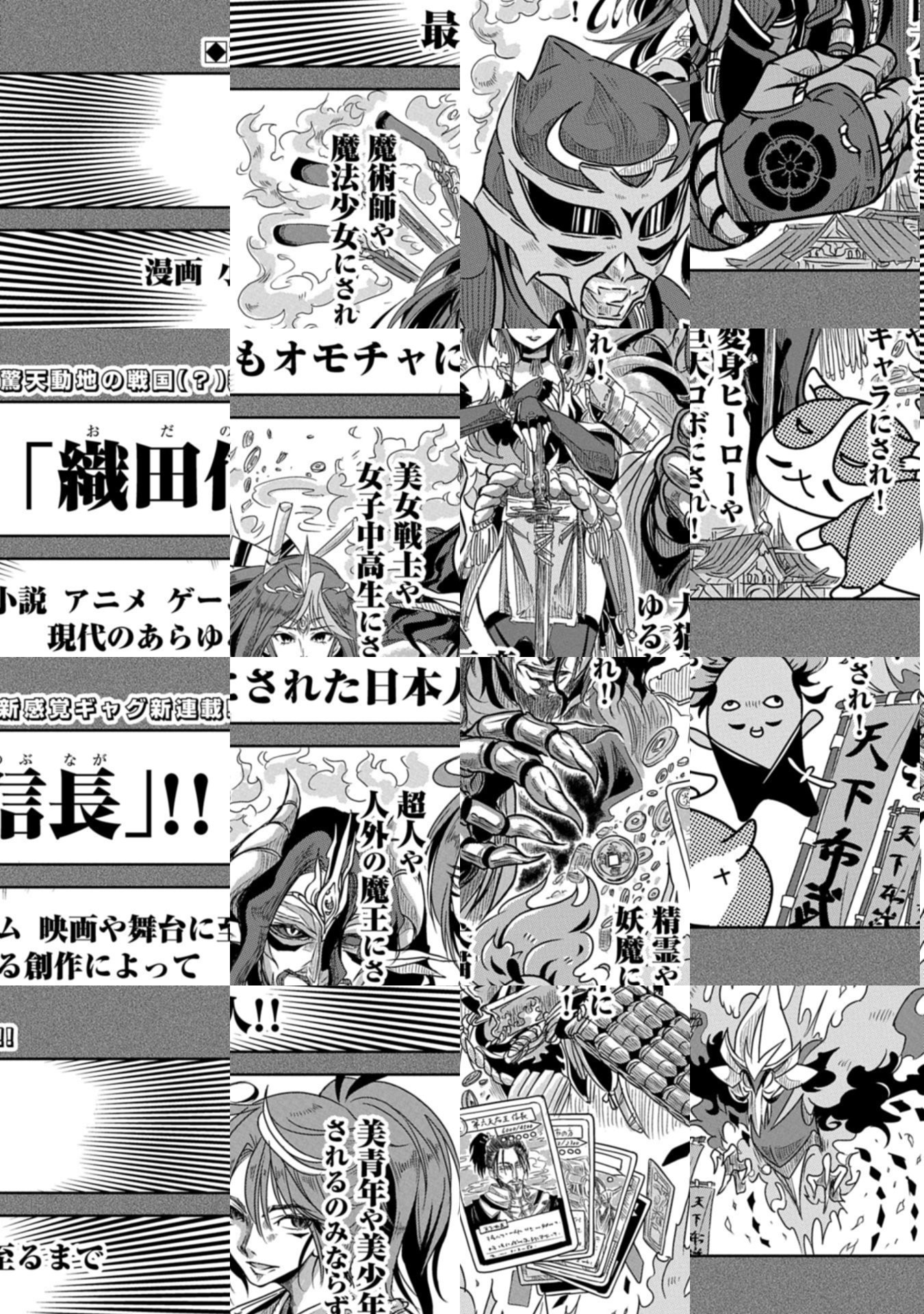 漫画やアニメ、ゲームなど後世の人間の創作によって、史上最もオモチャにされた武将・織田信長は、様々な「創作の信長」の世界へ転生を繰り返すうちに、武将という身分も生きた時代も性別すらも忘れ去って、現代で燃えカスのように燻っていた。 その小姓だった森蘭丸は、本来の世界の元の姿をかすかに思い出し始め、信長を元の立派な姿に戻そうと決意する。 障害となる明智光秀を倒そうとする二人だが光秀は強く、信長は負けるたびに世界が終焉を迎え、別世界へと転生してしまう⁉ 様々な「創作の信長」の世界を巡りながら光秀に立ち向かい、信長と蘭丸が本来の世界の姿を取り戻していくファンタジー冒険ギャグ!