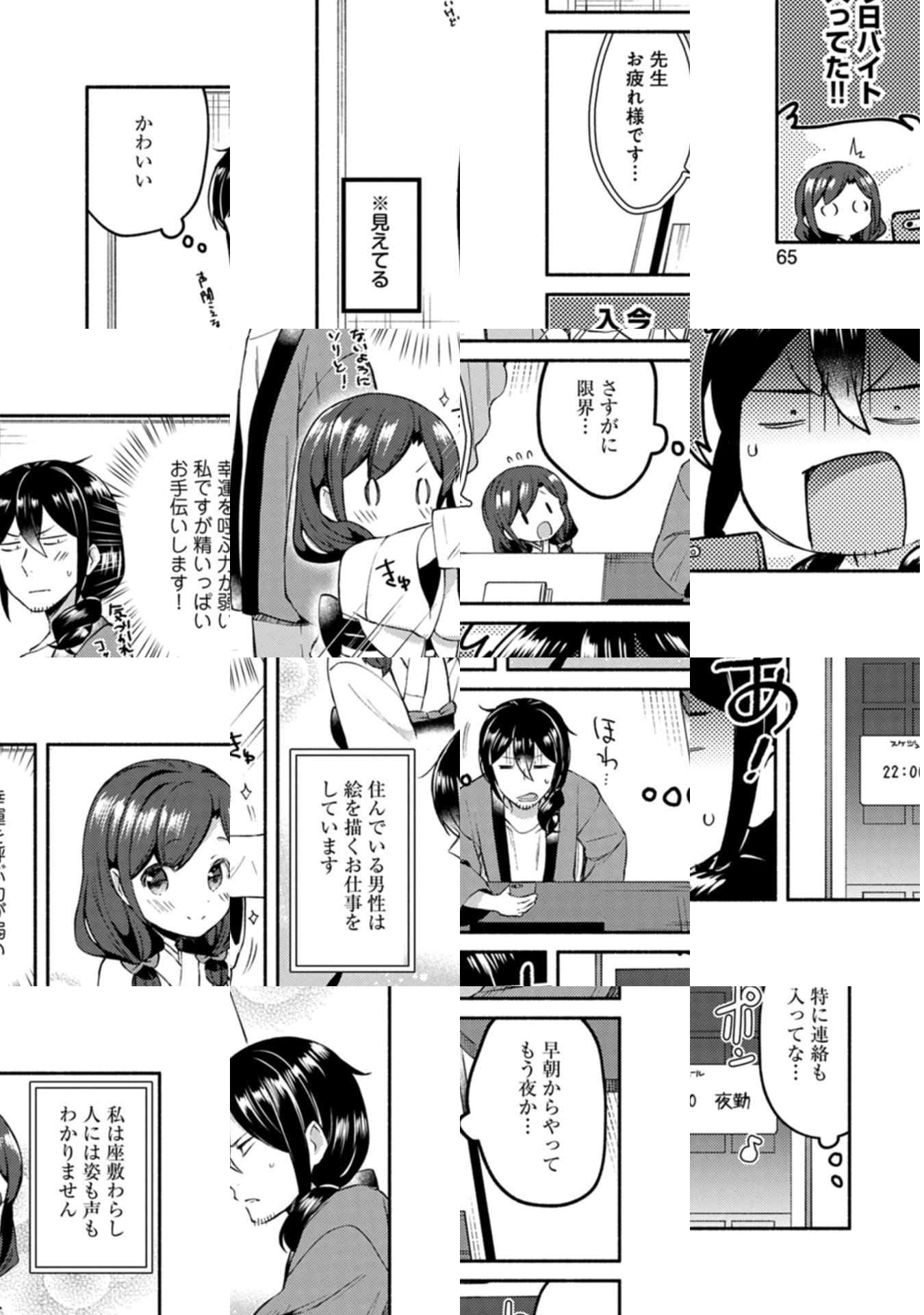 引っ越し先にいた座敷わらしは、見えてることに気づいてない!家事をがんばる姿が毎秒かわい過ぎて心震えつつ、でも見えてないフリしないと…。『おとめサキュバス』のぬっくがTwitterで描き好評を博した、マンガ家青年と座敷わらしの気づいてないふり同居生活!