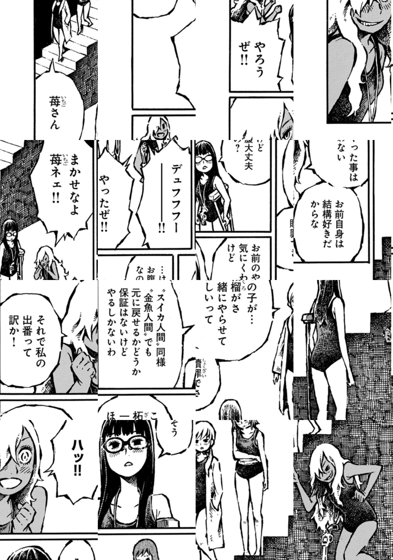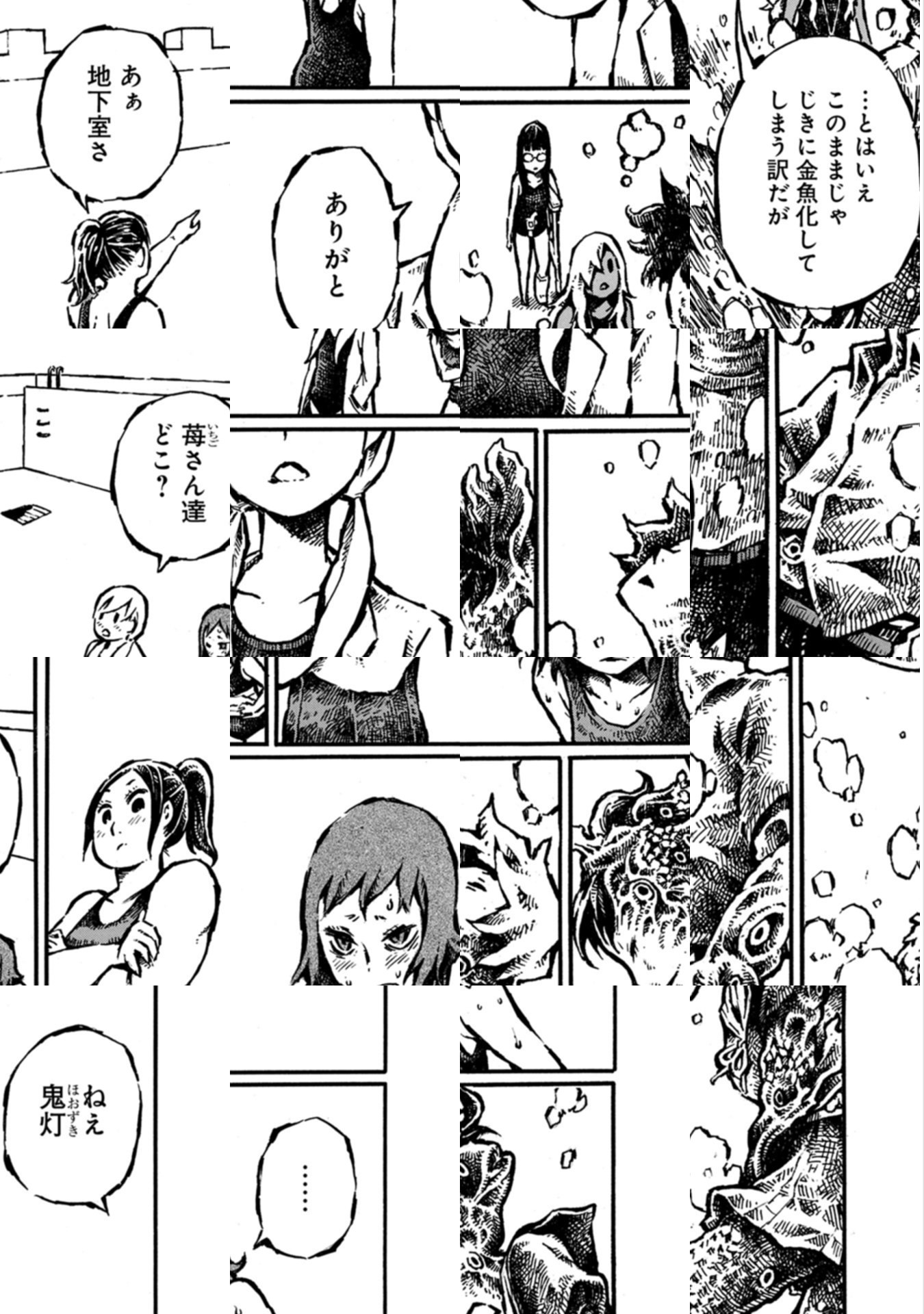 第15回文化庁メディア芸術祭マンガ部門審査委員会推薦作品にも選ばれた「血潜り林檎と金魚鉢男」が帰ってきた。夏の雨上がりの日に現れる、頭が金魚鉢の“金魚鉢男”は、人の生き血をすする。生き血を吸われた者は、数分以内に金魚になってしまう。防げるのは、“血潜り”と呼ばれるスクール水着姿の女子のみ。ひょんなことから血潜りの林檎に協力をすることになった高校生の昊介は今日も金魚鉢男を追う!